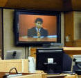 As the witness testifies and examines a document, the admitted exhibit is placed on the visual presenter and is projected to the jury. The jury sees the exhibit at the same time the witness sees it.